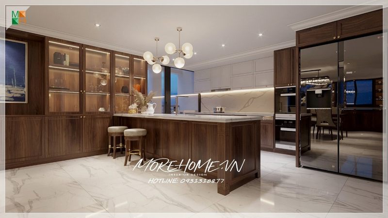Trang trí nội thất bếp sang trọng phong cách tân cổ điển tại biệt thự cao cấp Mỹ Đình